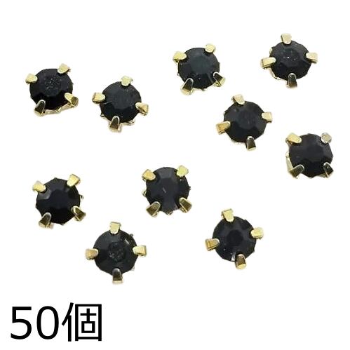 50個セット【ブラック】4mm台座付きラインストーン・爪付きラインストーンビジューアクセサリーパーツ・ハンドメイド材料資材通販・まとめ売り/1460ーB