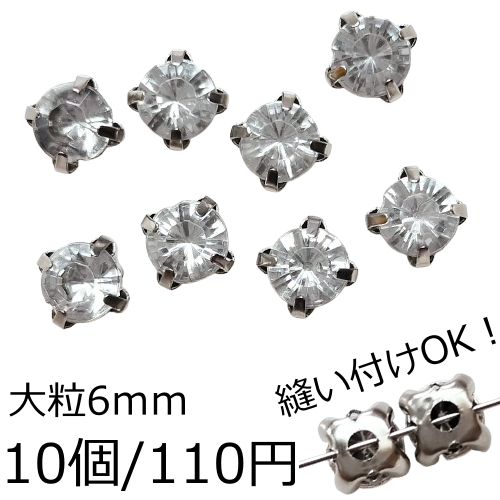 10個/キラッキラ!6mm縫い付けできる台座付ビジュー 爪付きストーン DIY アクセサリーパーツハンドメイド材料通販/型番11