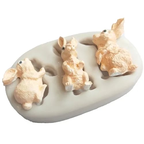 3羽のウサギのシリコンモールド 兎 うさぎ 粘土型 石膏型 エポキシ樹脂 DIY 資材 ハンドメイド材料 通販/型番C-406