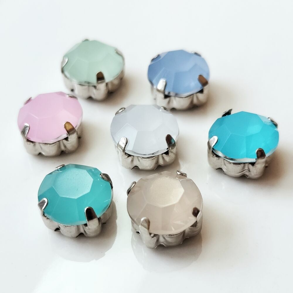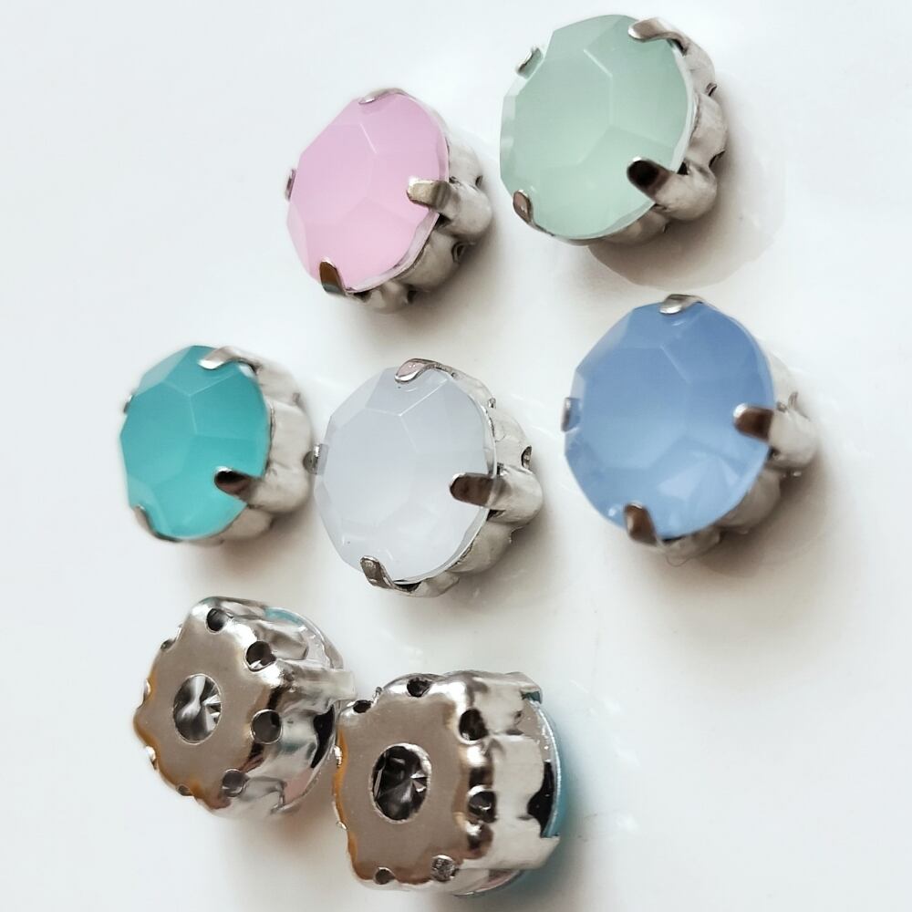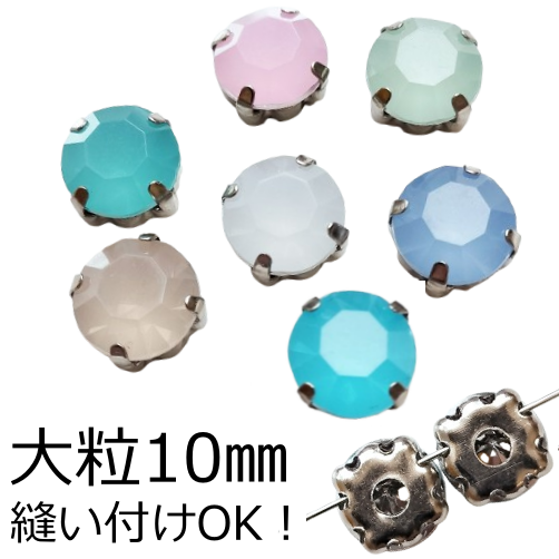 オーパルカラー直径10mm爪付きラインストーン 台座付きストーン ビジュー 縫い付け 縫製 アクセサリーパーツ ハンドメイド材料 資材 DIY 手作り 通販/88