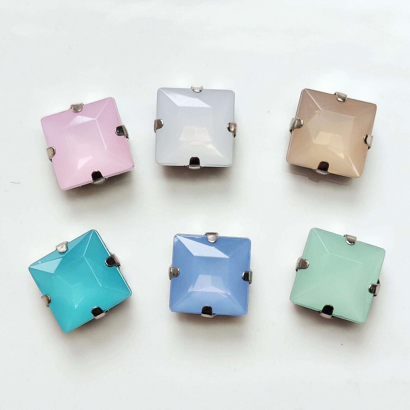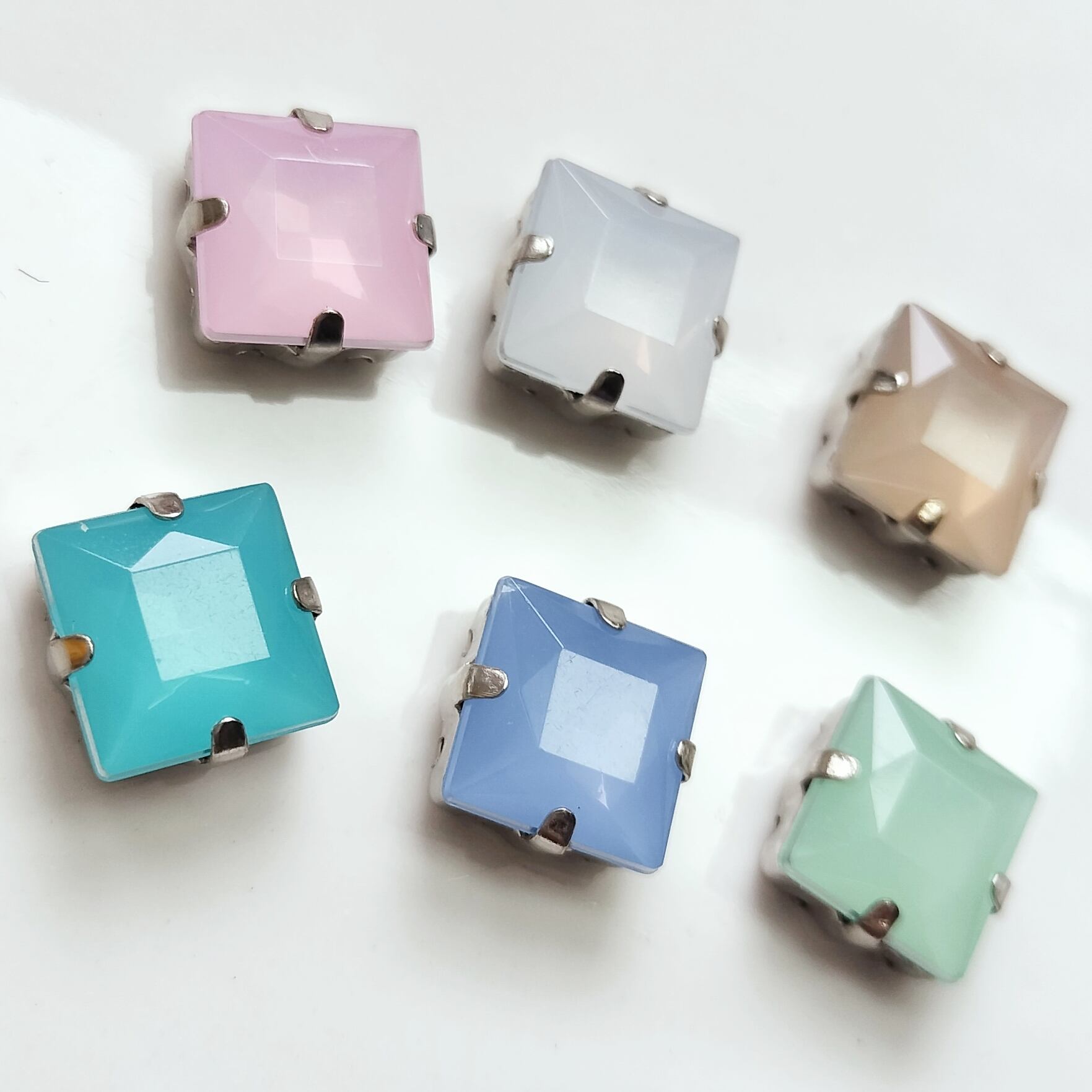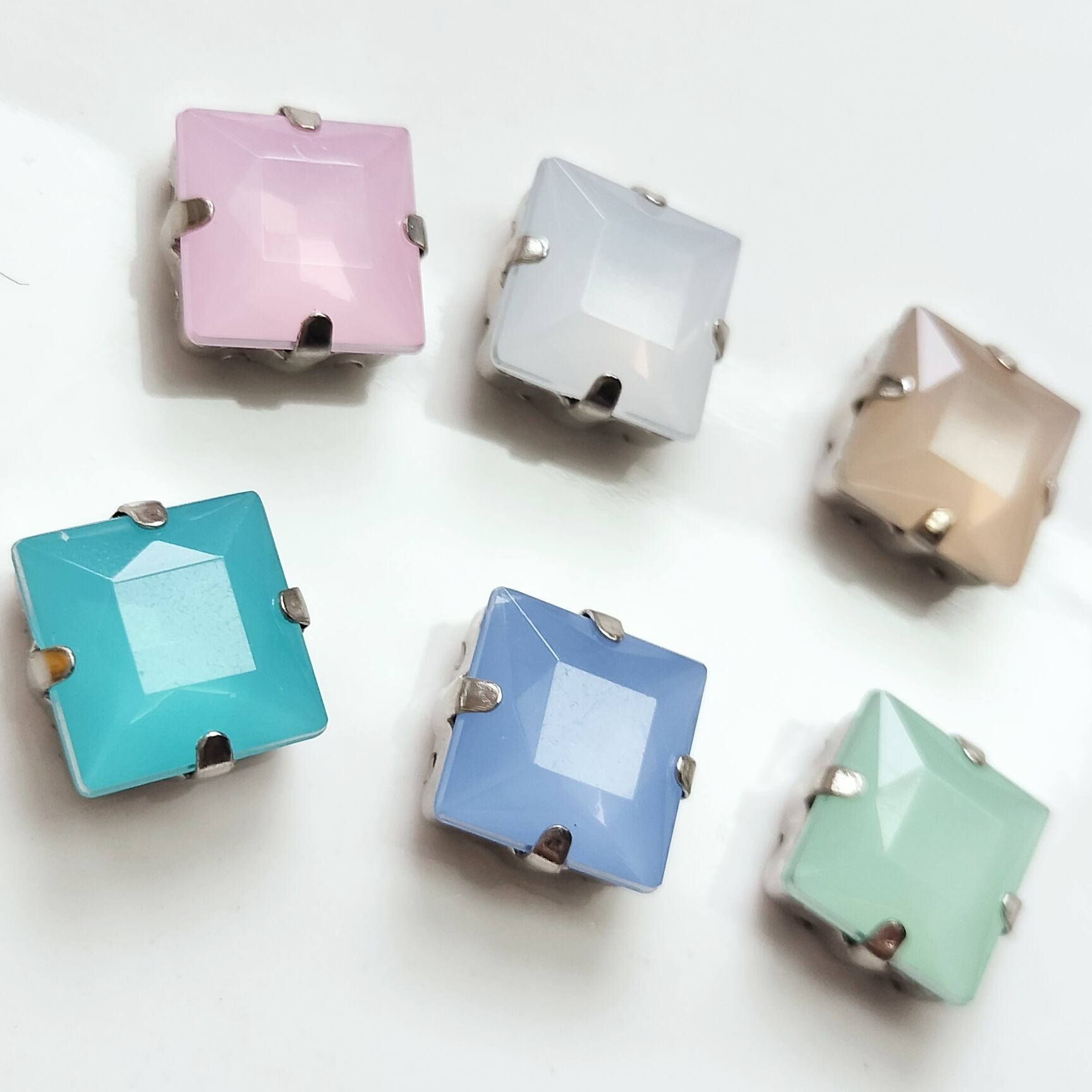 オーパルカラースクエア10mm爪付きラインストーン 台座付きストーン ビジュー 縫い付け 縫製 アクセサリーパーツ ハンドメイド材料 資材 DIY 手作り 通販/89