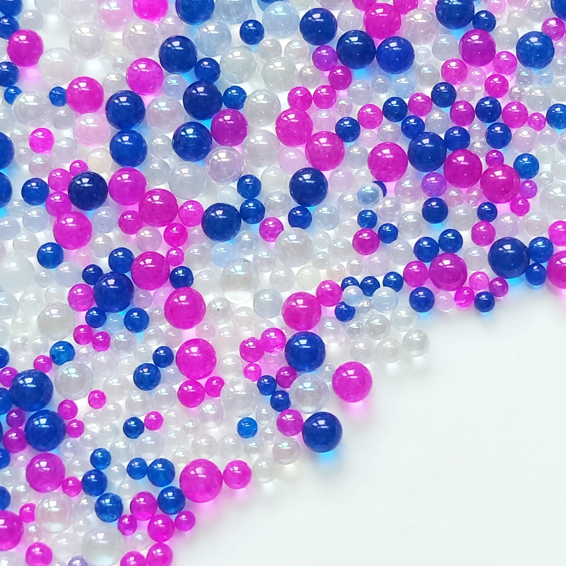 カラフルでコロコロ・真ん丸なガラスのツブツブです。